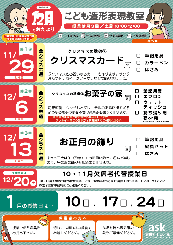 こども造形表現教室 2025年12月のおたよりが出来ました!