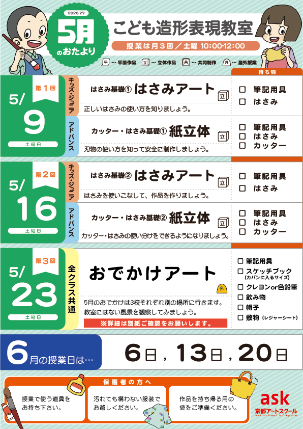 こども造形表現教室 2026年5月のおたよりが出来ました!
